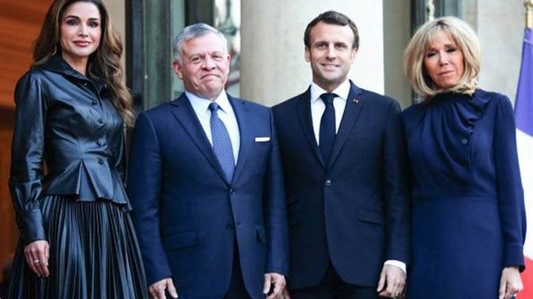 The French President Emmanuel Macron and his wife Brigitte greeted King Abdullah II of Jordan and his wife Queen Rania prior to a meeting at the…