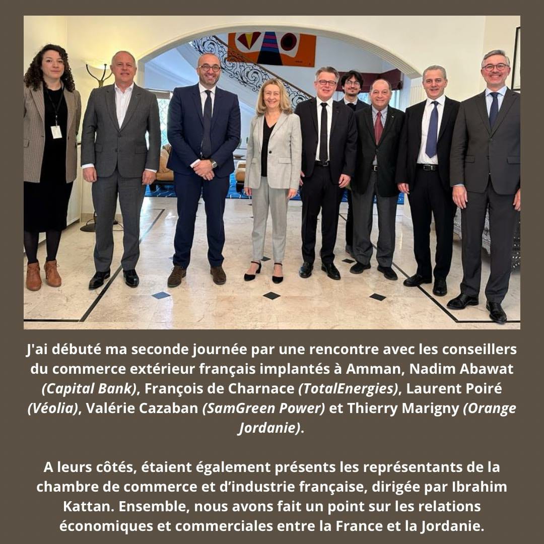 Alongside them were also present the representatives of the French Chamber of Commerce and Industry, led by Ibrahim Kattan. Together, we took stock of economic and trade relations between France and Jordan.