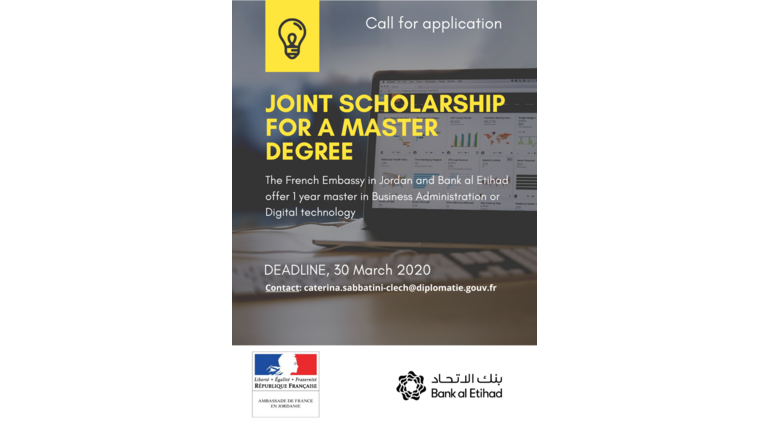 The French Embassy in Jordan and Bank al Etihad offer join forces to co-fund a one year master programme in France
